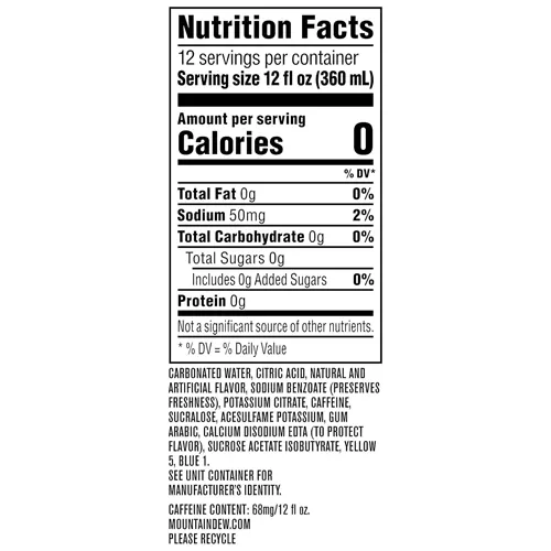 Enjoy the bold, tropical lime flavor of Mtn Dew Baja Blast Zero Sugar with the same refreshing kick you love and zero calories. It’s the perfect choice for a crisp, energizing drink anytime without the sugar. Two 12-packs of 12 oz cans.